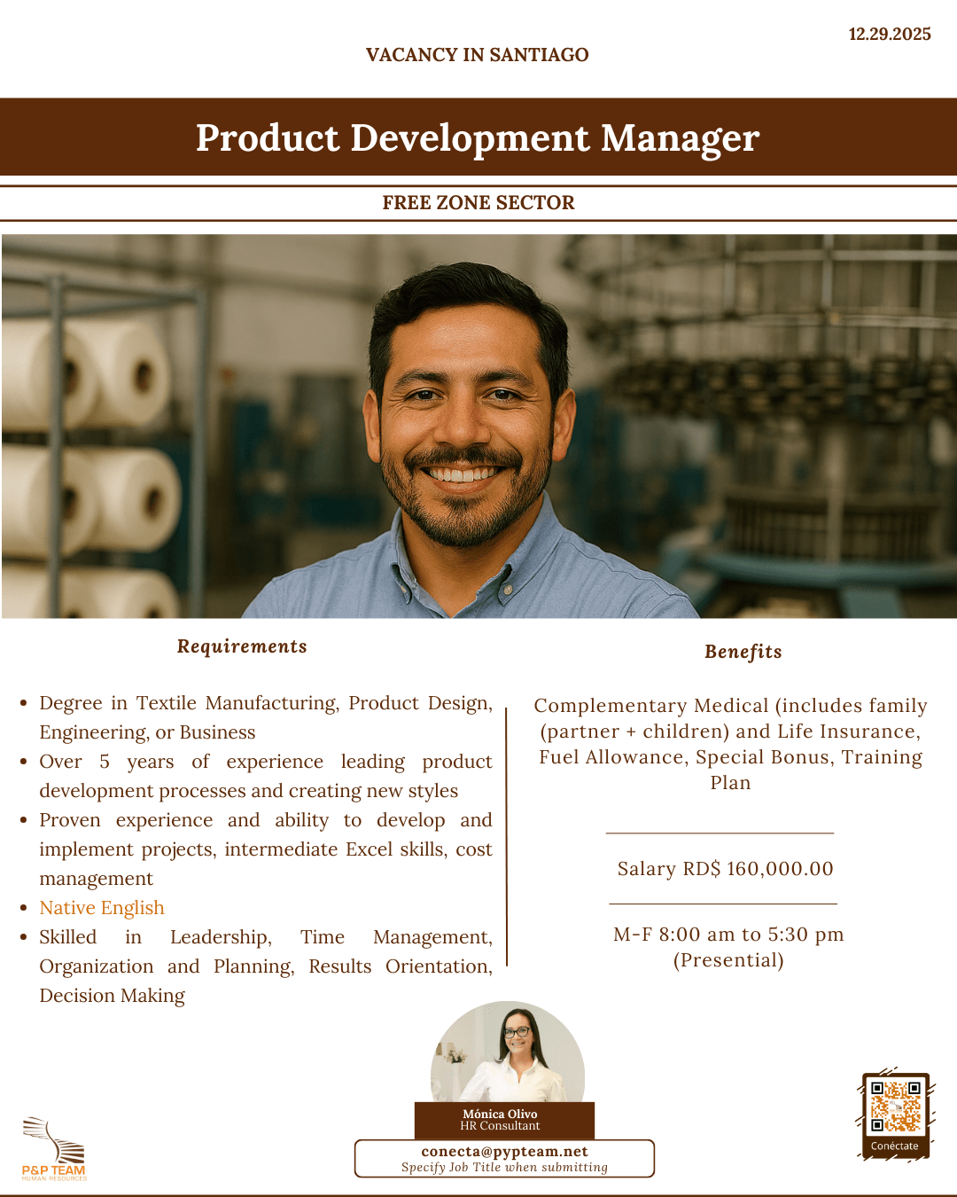 • Degree in Textile Manufacturing, Product Design, Engineering, or Business